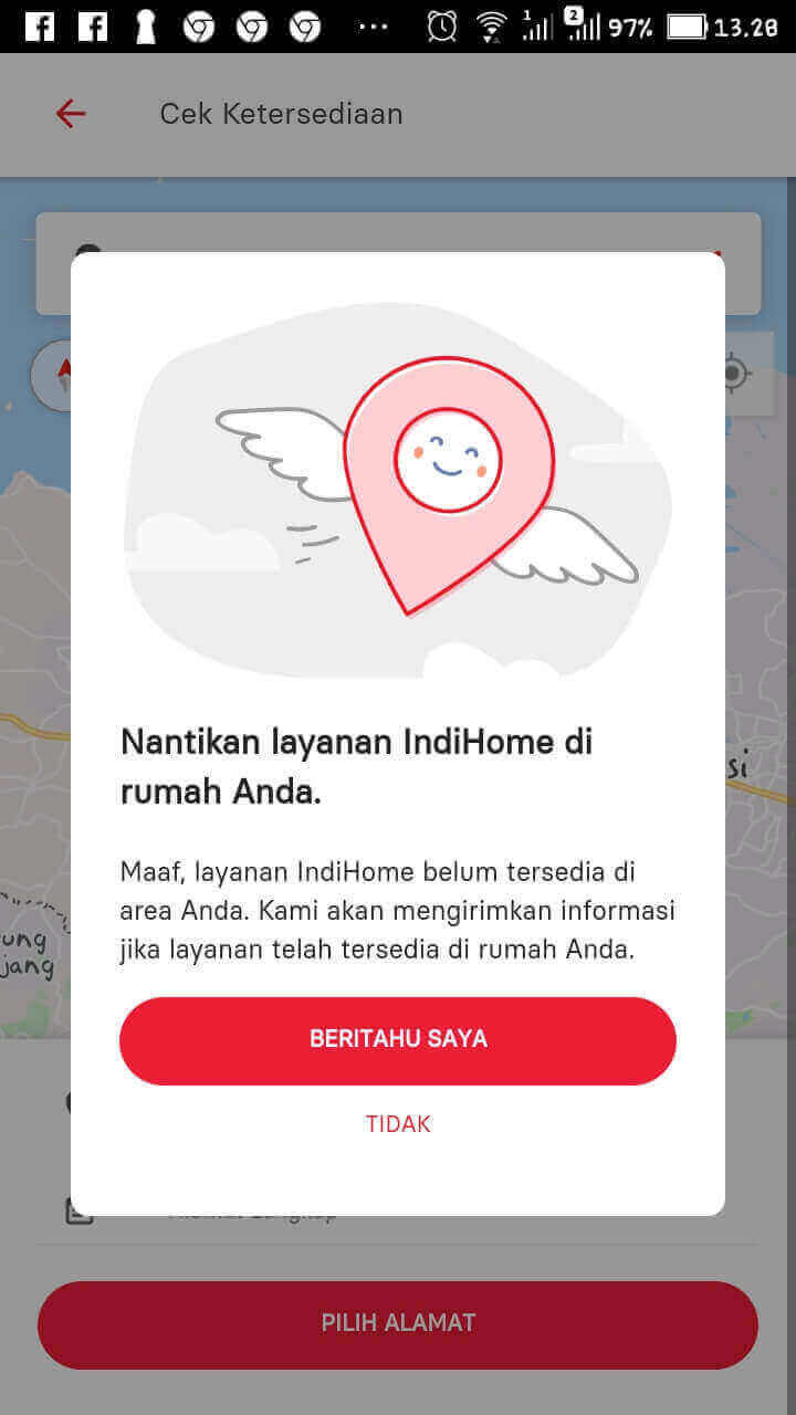 Tampilan Aplikasi my IndiHome Jika Jaringan Tidak Tersedia Di Lokasi